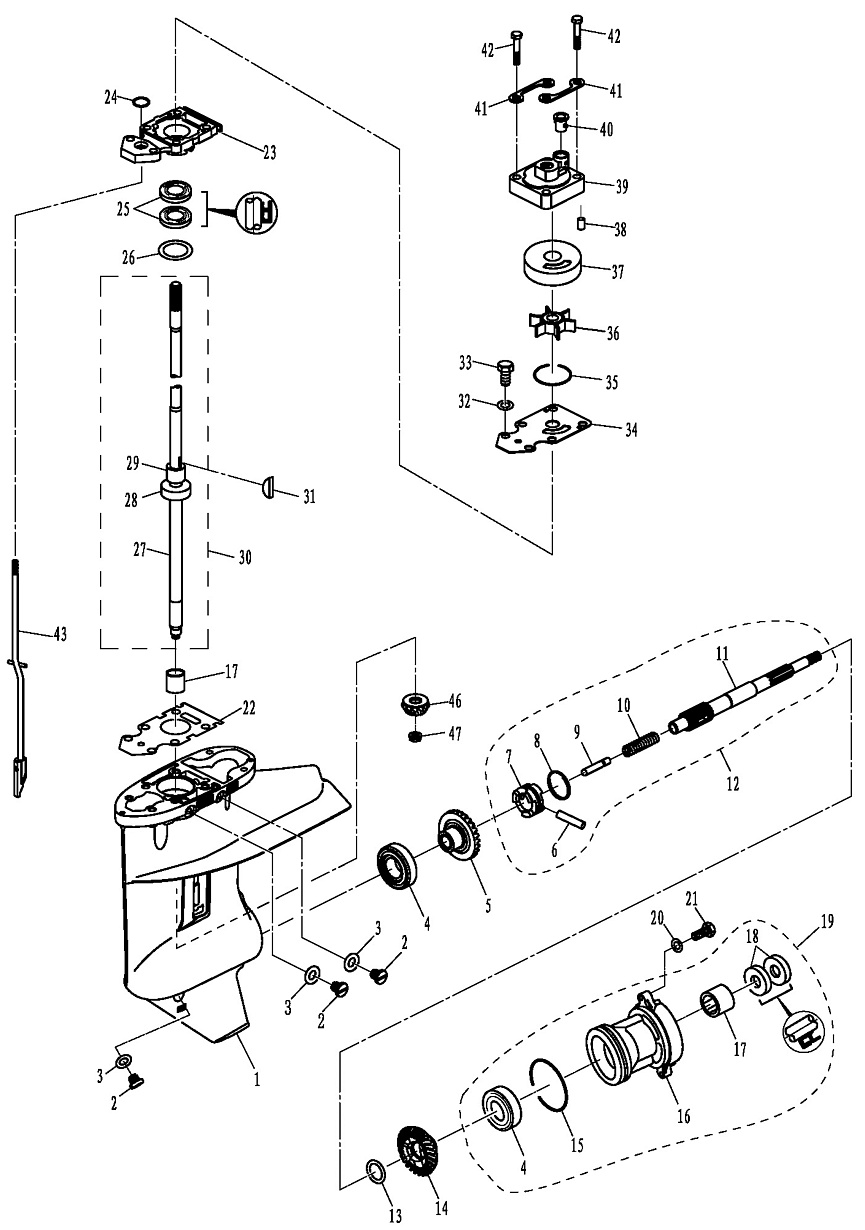 7 | НИЖНИЙ КОРПУС И ПРИВОД 1 | Лодочный мотор | F20ABWS -EFI PARSUN | Запчасти